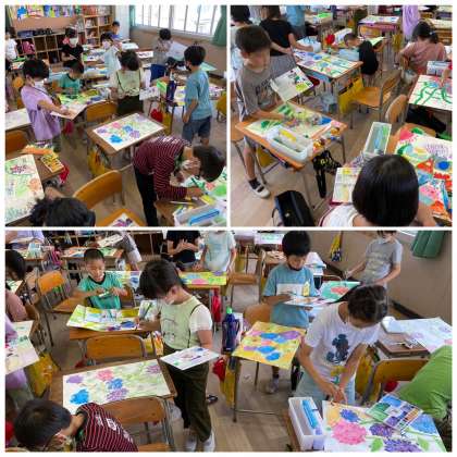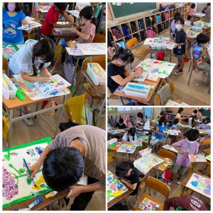 みんな花を一枚一枚、色の変化を楽しみながら絵の具で色を塗っていました。