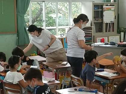 配付物の確認をしています。