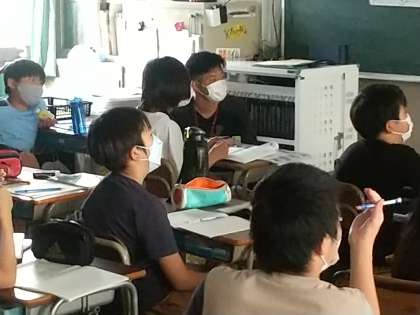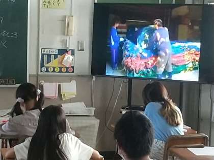 映像を見ながら“養殖業”について学んでいます。