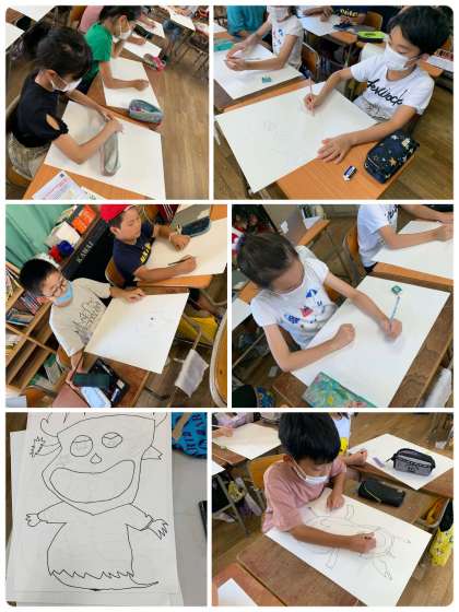画用紙に大きく、上下左右を非対称にして下絵をつくりました。