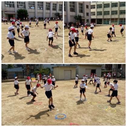 3年生は種から植えたホウセンカを観察したり、体育ではラダーやフラフープを跳んだりしました。