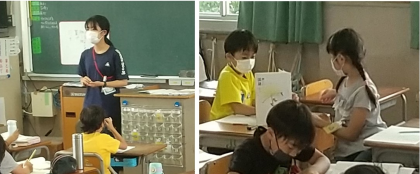 教育実習生が反対語について授業しています。