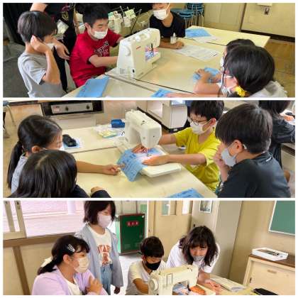 5年生の家庭の学習では、ミシンの使い方を学びました。