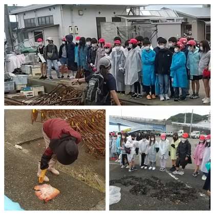 漁師さんに網にかかったエイを見せていただきました。