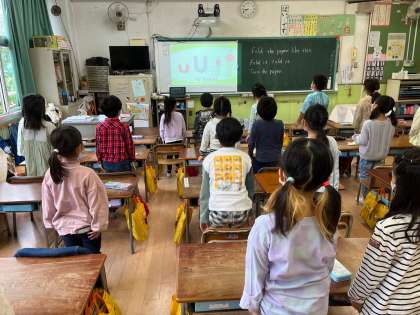 山之内小学校では、火曜と水曜の朝にイングリッシュタイムを設けています!