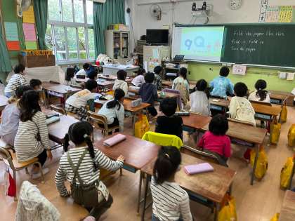 1年生は小文字の形を、歌に合わせてtall,short,tailと某コーヒーショップのように覚えています。