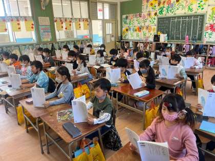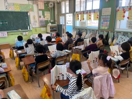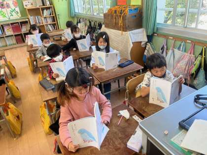 姿勢を正しく保ち、文章を正しく読めるように声かけをしています。