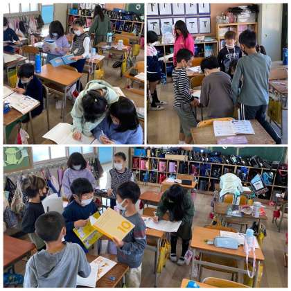 算数科では、「2.8」という数字をいろいろな見方で表しました。自分の考えを書いたノートを友だちと交換しながらみんなで学びました。