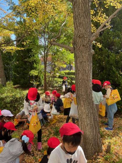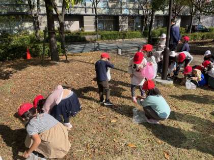 いろいろな種類のどんぐりや、きれいな落ち葉がたくさんあり、みんな楽しみながら活動できました。
