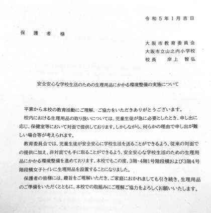 安全安心な学校生活のための生理用品にかかる環境整備の実施について