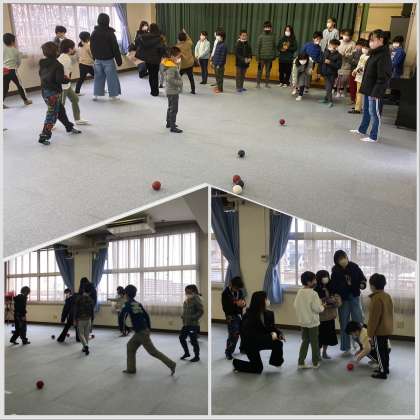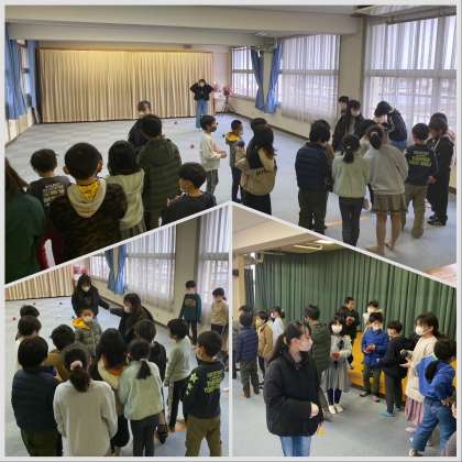 ボッチャ体験をしました。6年生からルールを教わり、みんなでボッチャを楽しみました。