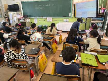 朝会で校長先生から出される質問に、自分で入力して答えることができました。