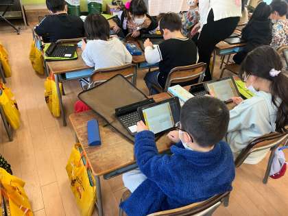 1年生はICT学習の一環として、フリック入力を練習しています!