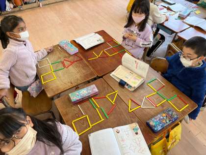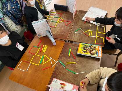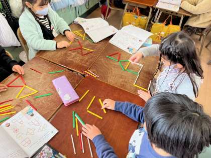 色板を使ったり、色棒を使ったりして、さまざまな形を作っています。