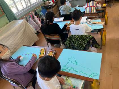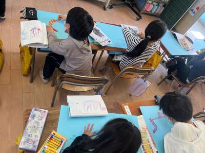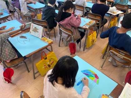 子どもたちは国語の学習で読み取った中から、お気に入りの場面を選び、そこを描きます。