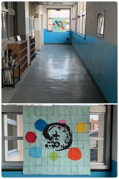 「すげー!でっかい【結】や」 「めっちゃいいやん!」 「やっぱりー。【結】やと思ってたわ〜」  朝からさまざまな反応。  パーツごとに貼り絵を作っていたみんな。  答えがわかっていた人もそうでない人も、ステキな仕上がりににっこり。  4年生が始まった日に、私たち4年生チームの教職員が、4年生のみんなが、3月の修了式につけて欲しいと願った力。 それが【結】  最後の最後に完成させ、みんなの旅立ちを見つめてくれます。  学びが楽しいと気付けた4年生。  自分が動くことでたくさんの人や場所とつながることに気づけた4年生。  これからも【結】を大切にして、ステップアップして欲しいと違っています。