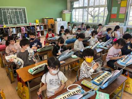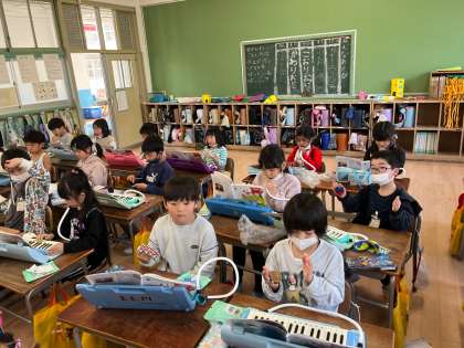 1年生は音楽で、「こいぬのマーチ」の合奏をしました!