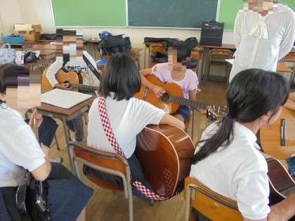 授業では、英語や数学(小学校では算数)などの各教科を、教科担任の先生が教えてくださいます。また、部活動体験では、ギター部や野球部など、先輩と一緒にたのしく活動していました。