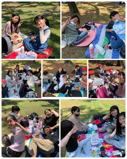 青空のもと、友だちと一緒に食べるお弁当。