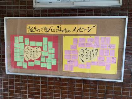 いよいよ4月生まれのみんなをお祝いするバースデーメッセージ集会が始まりました。