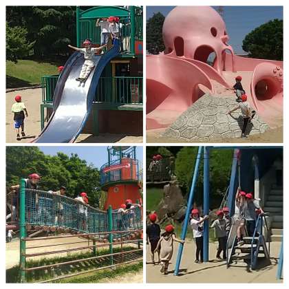無事、オリエンテーリングを終え、海遊ランドで遊んでいます。