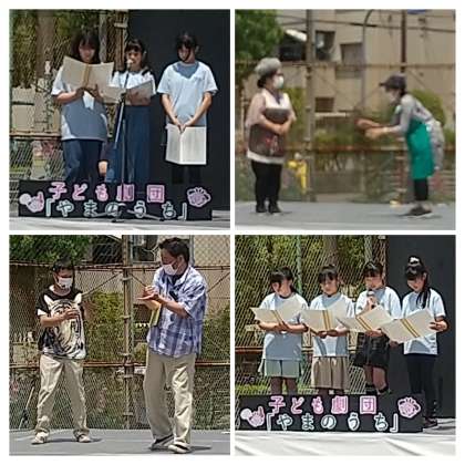 住吉区役所と子ども劇団「やまのうち」がコラボして特殊詐欺の手口をテーマに防犯劇が上演されました。