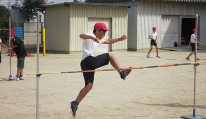5年生では、運動場で「高とび」をしています。