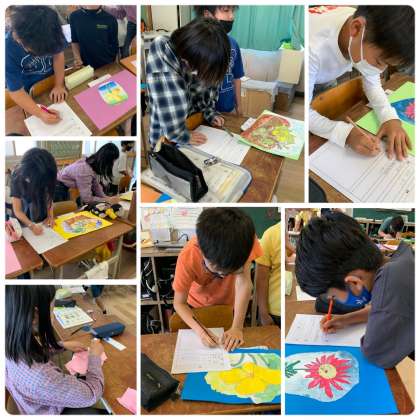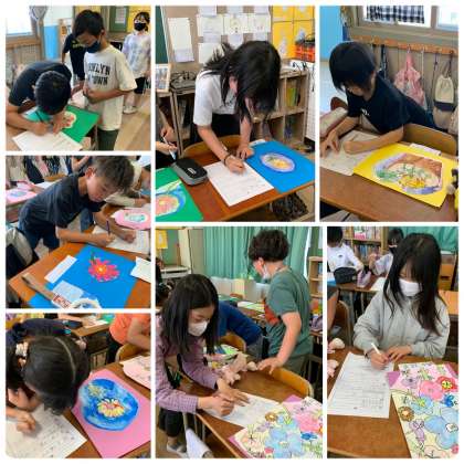 それぞれの作品の工夫を【自分から自分らしく】自分の言葉で友だちに伝えていきます。