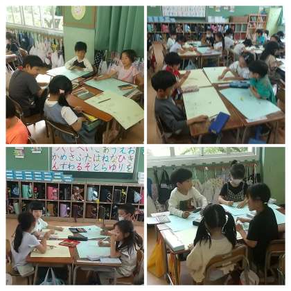 雨が降ると物語の登場人物・動物はどう過ごすか、を絵で表現しています。
