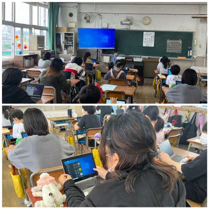 写真は新しく知った機能をクラスのみんなに紹介し、使い方を説明している様子です。