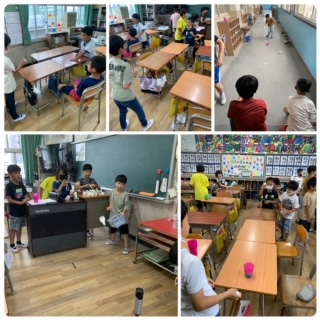 卓球の玉を使って、ゴールのコップの中に入れる遊び。