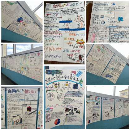 6年生の国語で作っていた防災ポスターが完成しました。どのポスターにも工夫がたくさんあり、とても素敵なものとなっています。