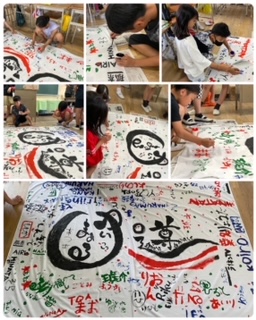 以前、各クラス選抜2人ずつの6人で作った旗に、