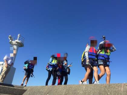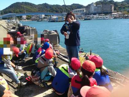 いよいよ釣りが始まります。説明をしっかり聞いて魚は釣れるかな?