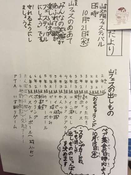 各学級の出し物が決まりました。盛り上がってきています。