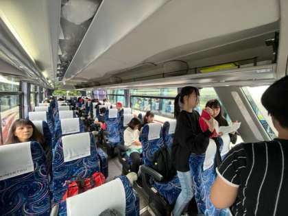 閉舎式を終え、バスと学校をネット中継し、集会で修学旅行の報告をします!