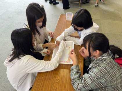 お気に入りのシーグラスとビーズ、毛糸を組み合わせて作っています。