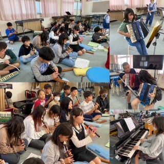 休み時間は、色んな楽器の5年生と合わせるのにひっぱりだこ。