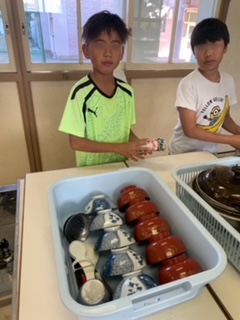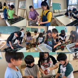 翌日の調理実習を楽しみにして、準備を進める5年生。