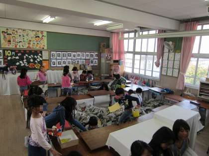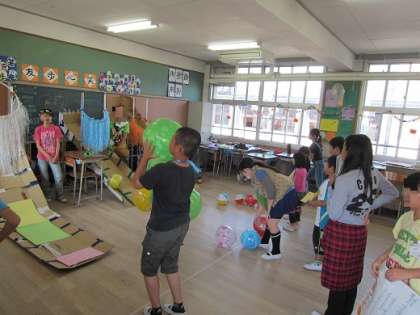 2年生から6年生までが、各学級または特別教室にてお店を出しました。店を回るときは、ペア学年で一緒に行動をします。