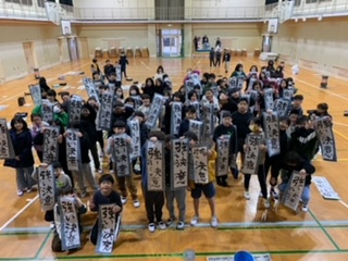 そんな体育館に習字セットを持って、集まってきた5年生。