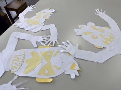 1年生は初めて図工室へ行って、紙版画を行いました。節分に合わせておにを作りました。
