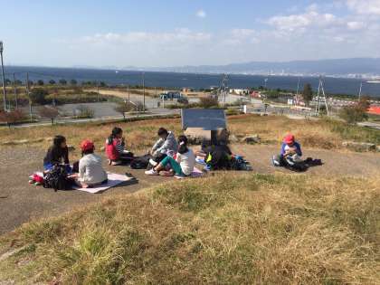 気持ちの良い空の下、お弁当タイムです。お家の方々ありがとうございます!
