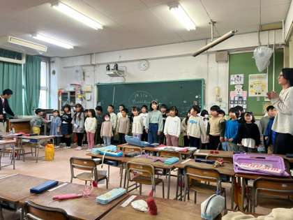 休み時間、みんなコマ回しやお手玉の練習に、はげんでいました。