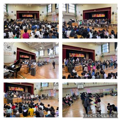 5年生の合奏の様子と、6年生から在校生へのプレゼントです!