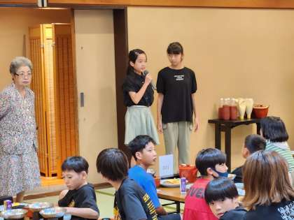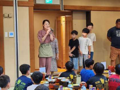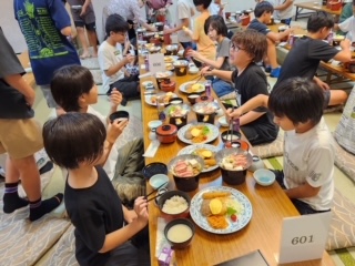 お世話になる宿舎の相生に到着し、開舎式を行い、夕食を食べました。