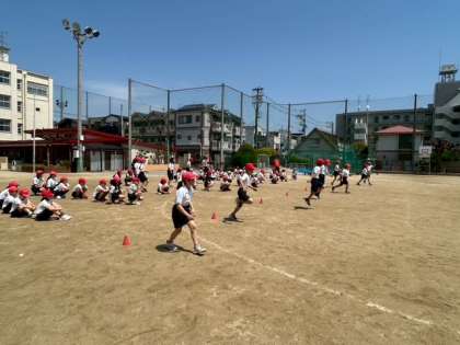 ?今週は体育で、大和川中学校の先生に走り方の指導をしてもらいました。