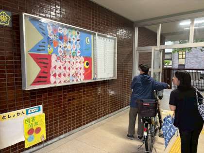 山之内に来たお客さんをお出迎え! 〜1年生玄関掲示〜
