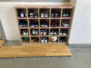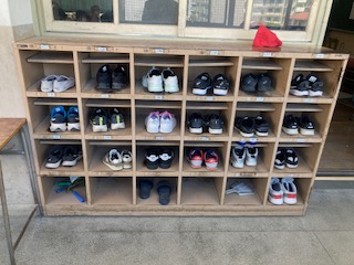 きれいにそろってました。今日は、5年生が頑張っていました。6年生がいない時は、5年生が学校を引っ張ってくれます。写真は1年生と5年生の靴箱です。素敵ですね。