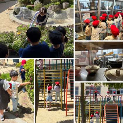 運動場に出ても、お花が咲いているのを見つけて、管理作業員さんに育てるコツを教えてもらっていました。